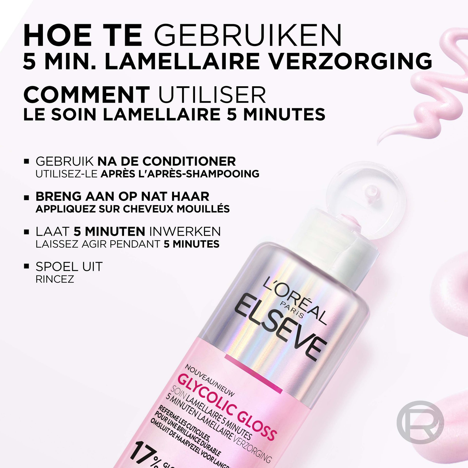 Elvive Glycolic Gloss 5 Min. Lamellaire verzorging zorgt voor een haartransformatie die 10 wasbeurten lang aanhoudt.